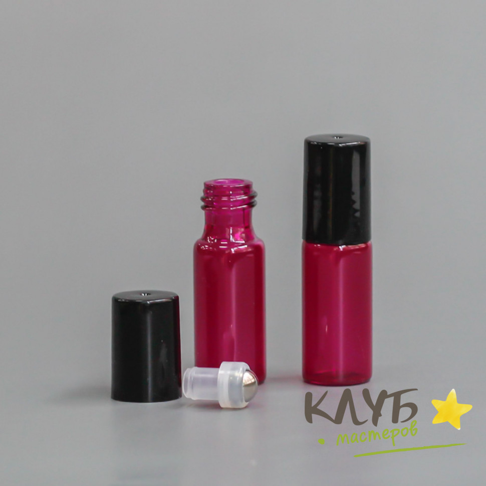 - Флаконы-роллеры розовые 5 мл (стекло), 5 шт.